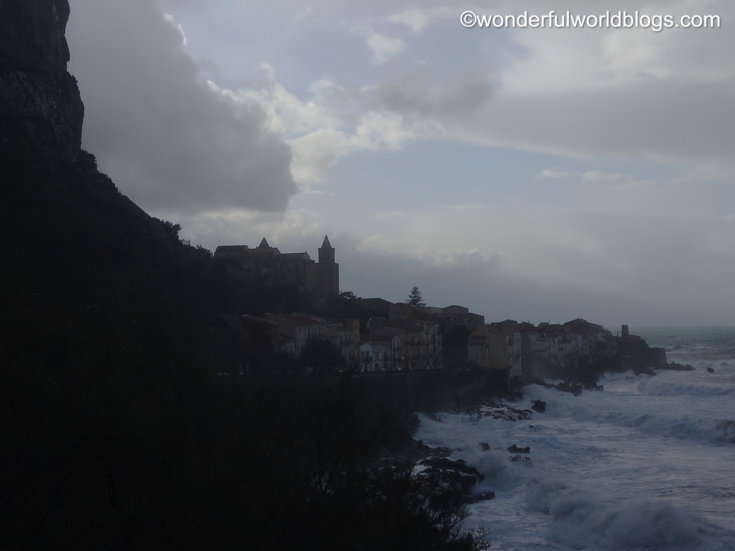 From Palermo there are a few trains a day east along the Tyrrhenian coast to the small town of Cefalù. Along the wave-battered coast with its backdrop of brooding mountains, their heads lost in the clouds, are crumbling watch-towers guarding from enemies long-since departed. Its bohemian lanes leading up from the harbour and medieval laundrette are overshadowed by the scale of its cathedral, and its backdrop La Rocca, a sheer, 270 metre cliff face.